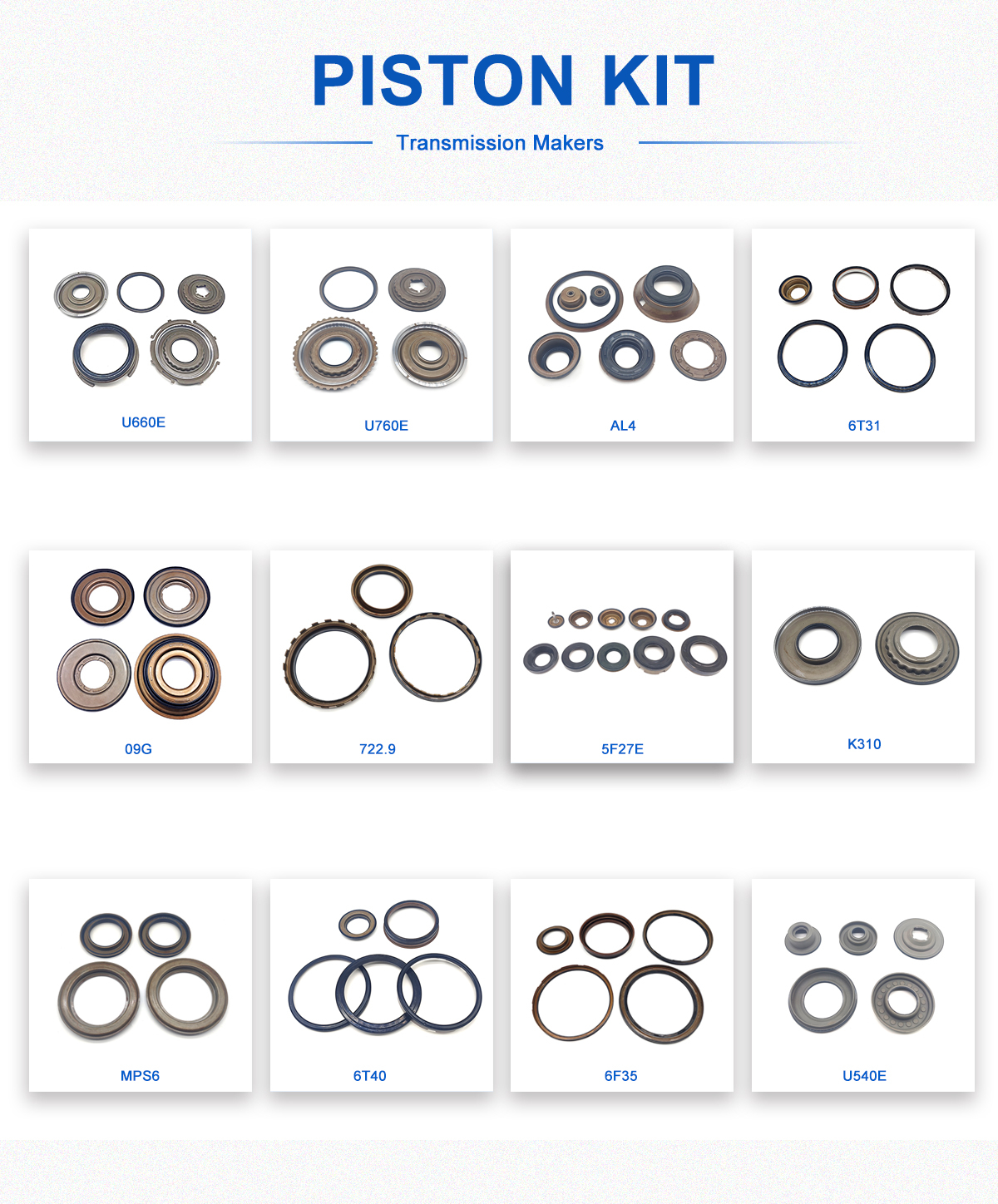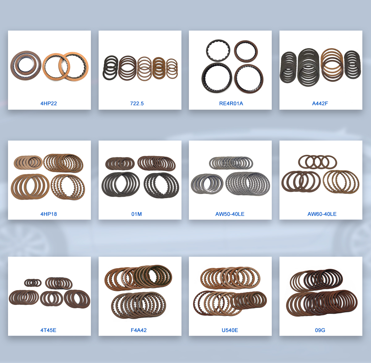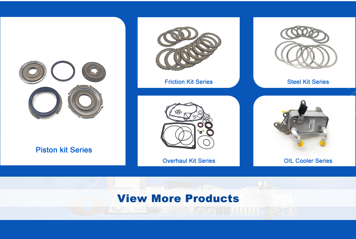 Productos principales:Kit de fricción de transmisión automática, kit de acero de transmisión automática, kit de reacondicionamiento de transmisión automática, kit de pistón de transmisión automática, enfriador de aceite de transmisión automática